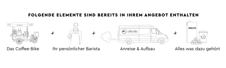 Bei Veranstaltungen mit einer großen Anzahl von Gästen (>100) empfiehlt sich ein zweiter Barista. Dadurch werden lange Schlangen vor dem Coffee-Bike vermieden und Ihre Gäste kommen schnell und unkompliziert in den Genuss der Kaffeespezialitäten.